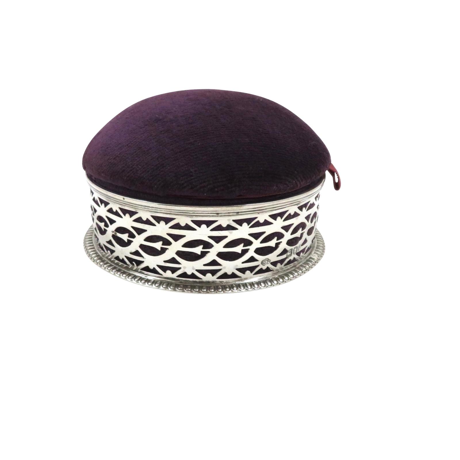 Antique Victorian Sterling Silver & Velvet Trinket Box 1900