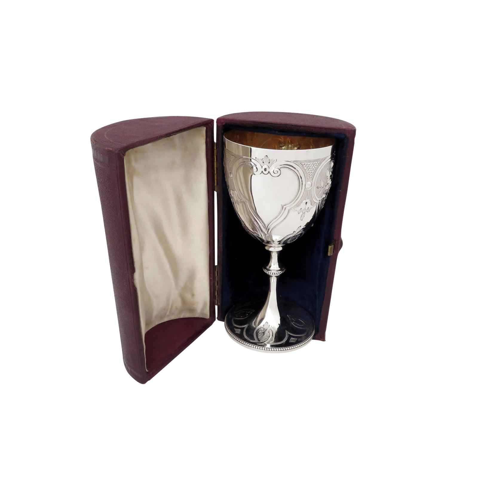 Antique Victorian Sterling Silver Wine Goblet in Case 1867