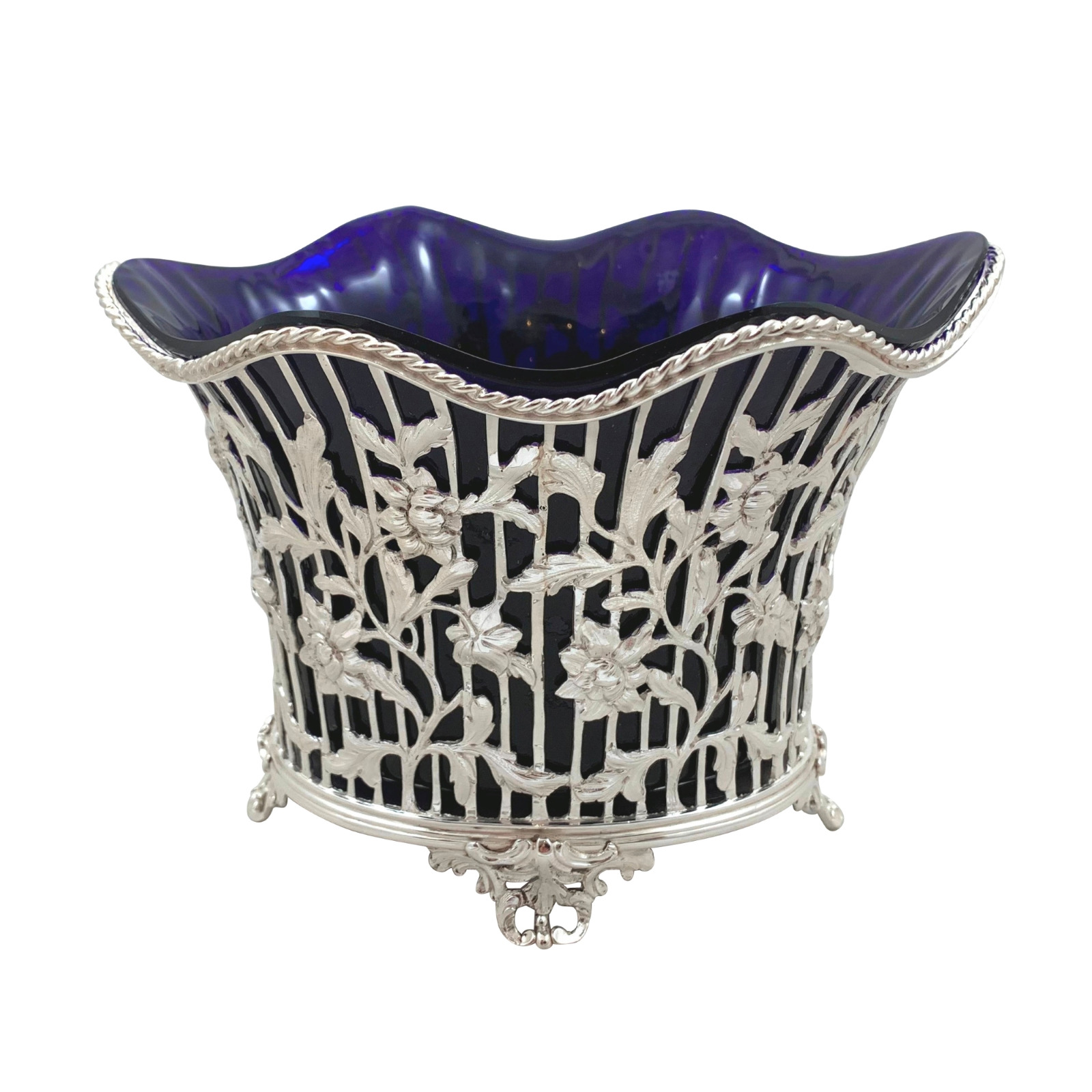 Antique Victorian Sterling Silver with Blue Glass Liner 1899