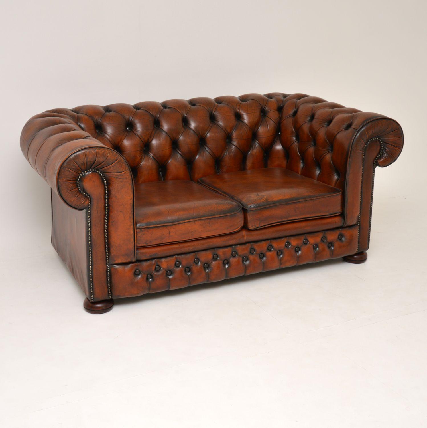 Antique Victorian Style Leather 2 Seat Chesterfield Sofa
