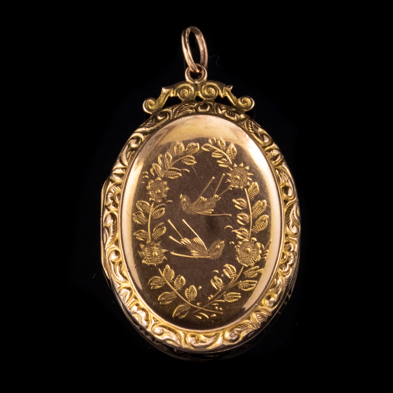 Antique Victorian Swallow Floral Locket 9ct Gold c.1880