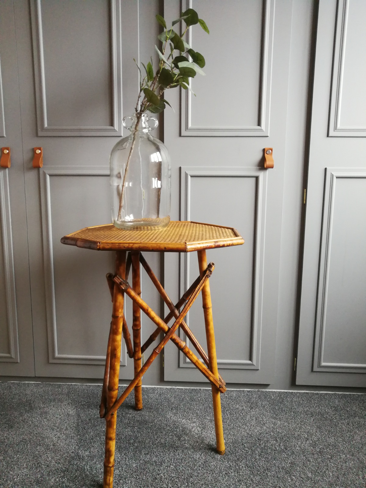 Antique Victorian Tiger Bamboo Side Table Console Lamp Table