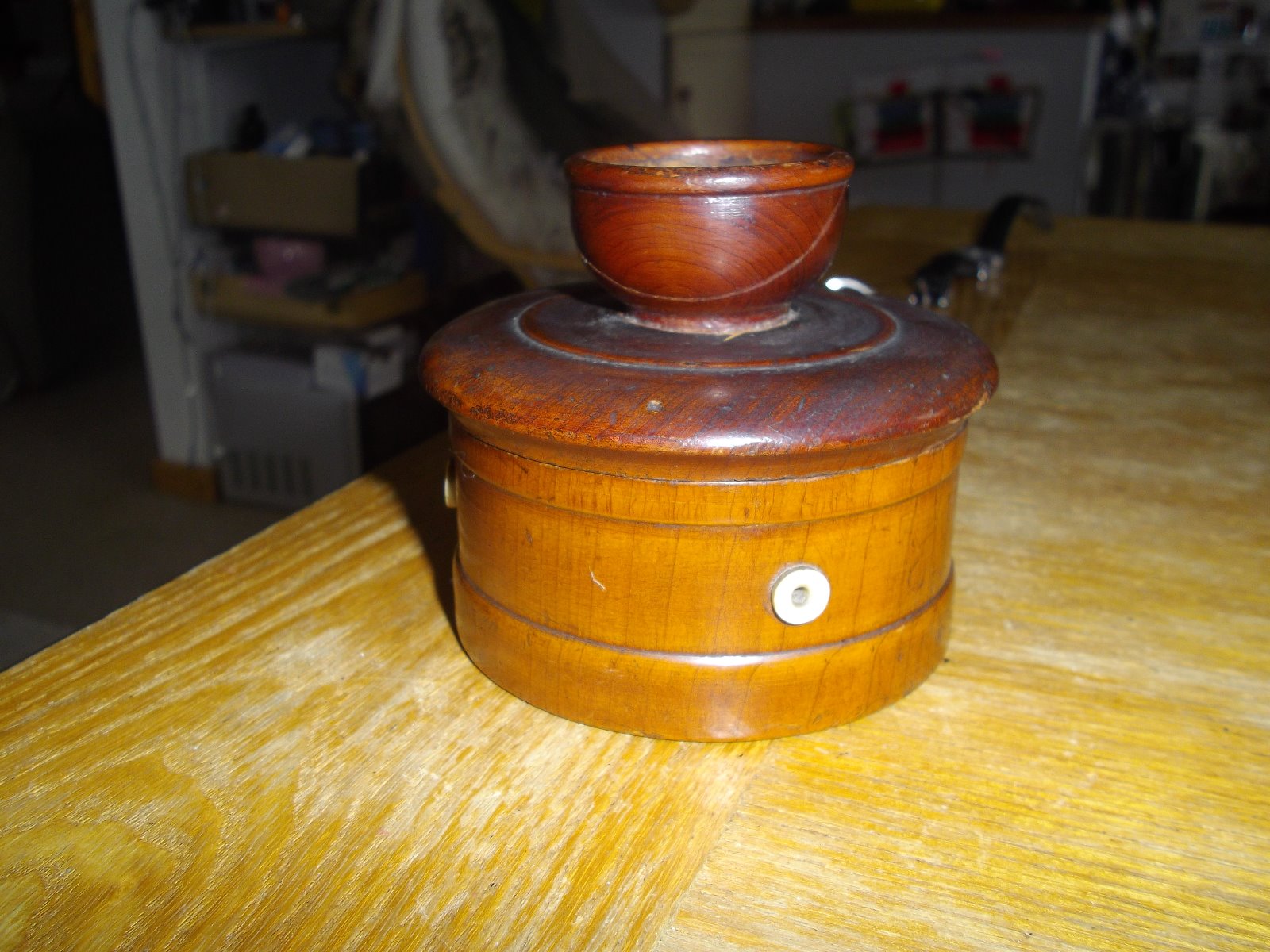Antique Victorian Treen String Box with Reel Holder Top c.1870