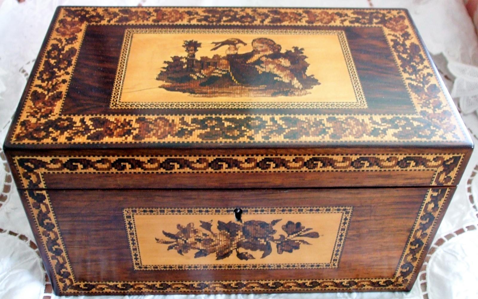 Antique Victorian Tunbridge Ware Tea Caddy ~ Hollamby