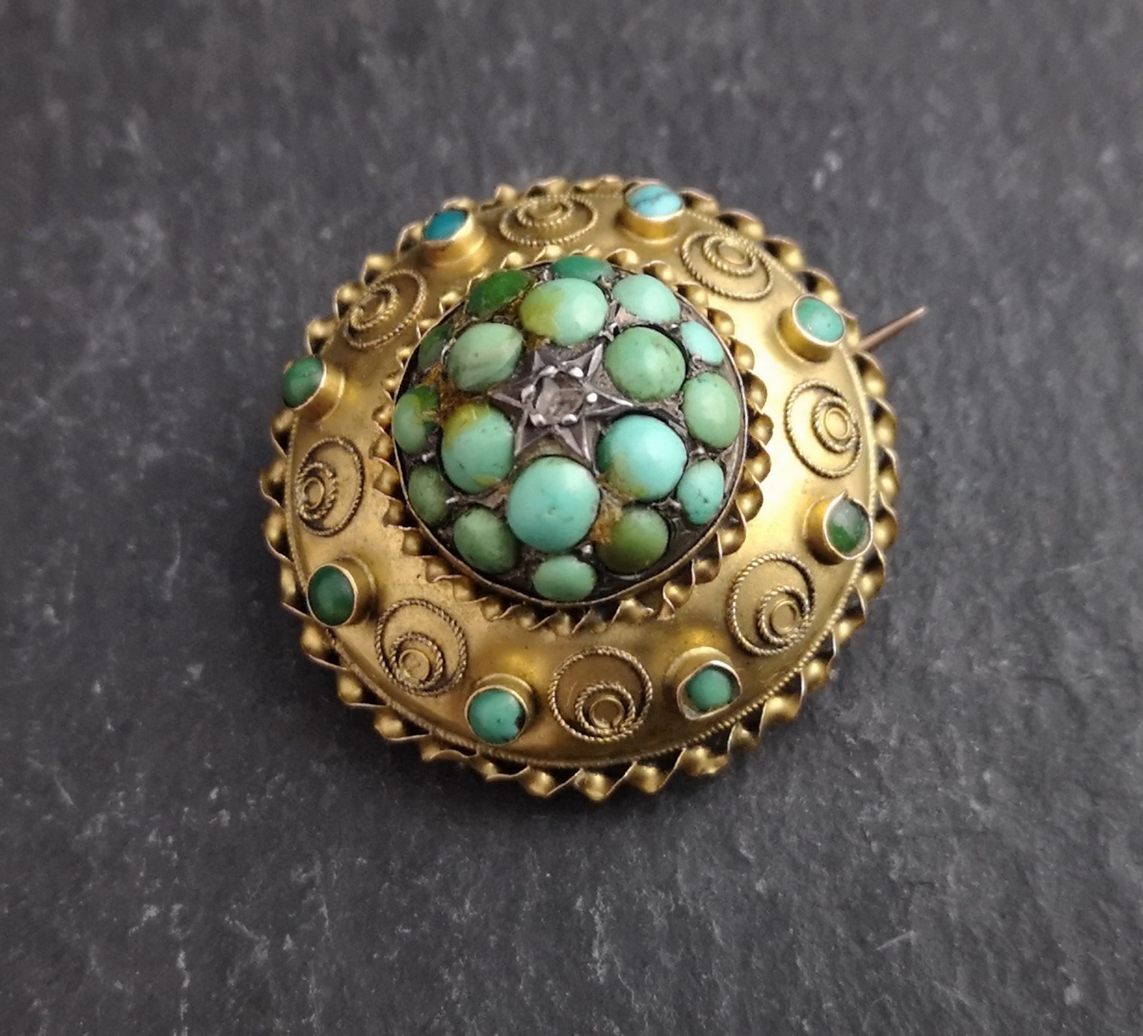 Antique Victorian Turquoise and Diamond Locket Brooch