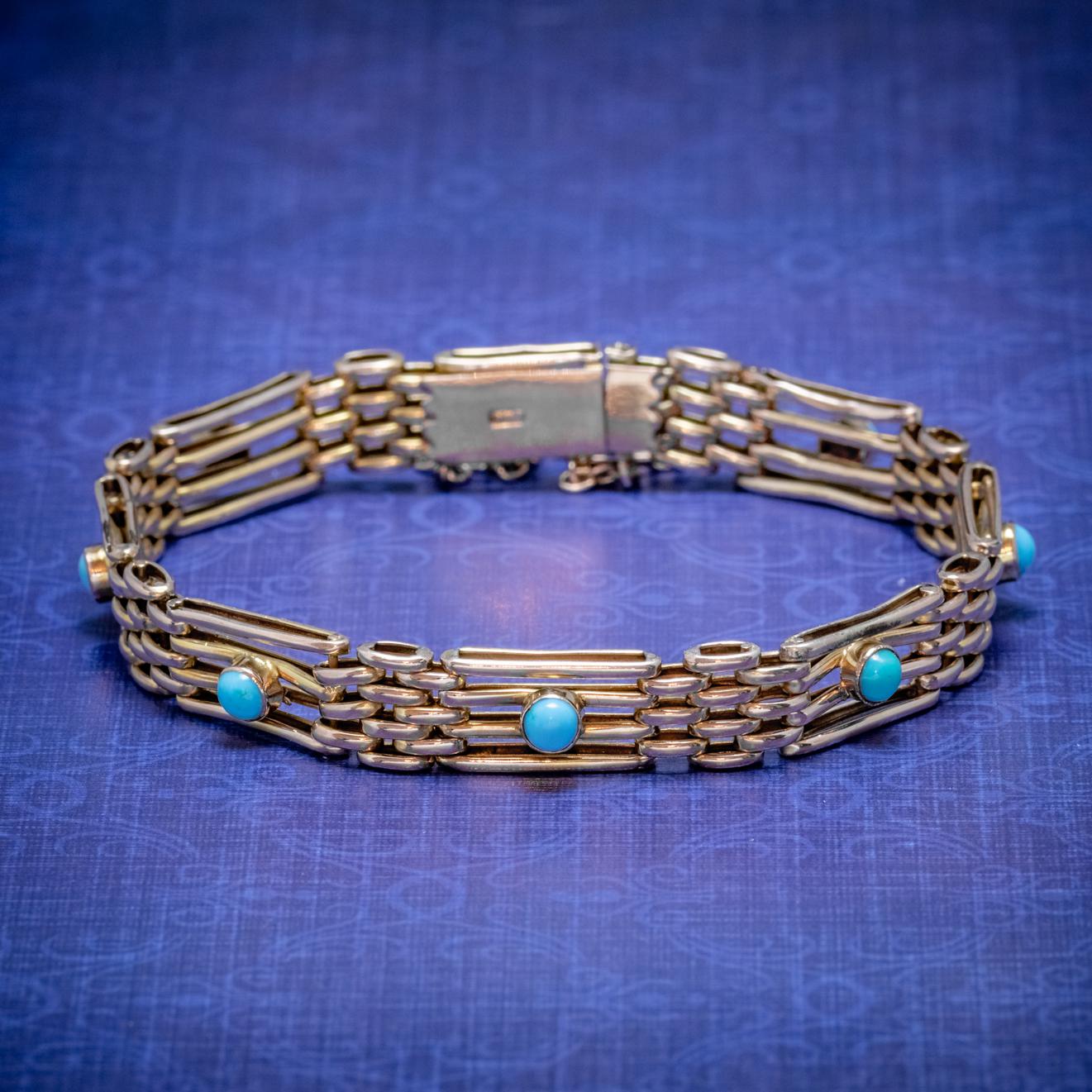Antique Victorian Turquoise Gate Bracelet 9ct Gold c.1900