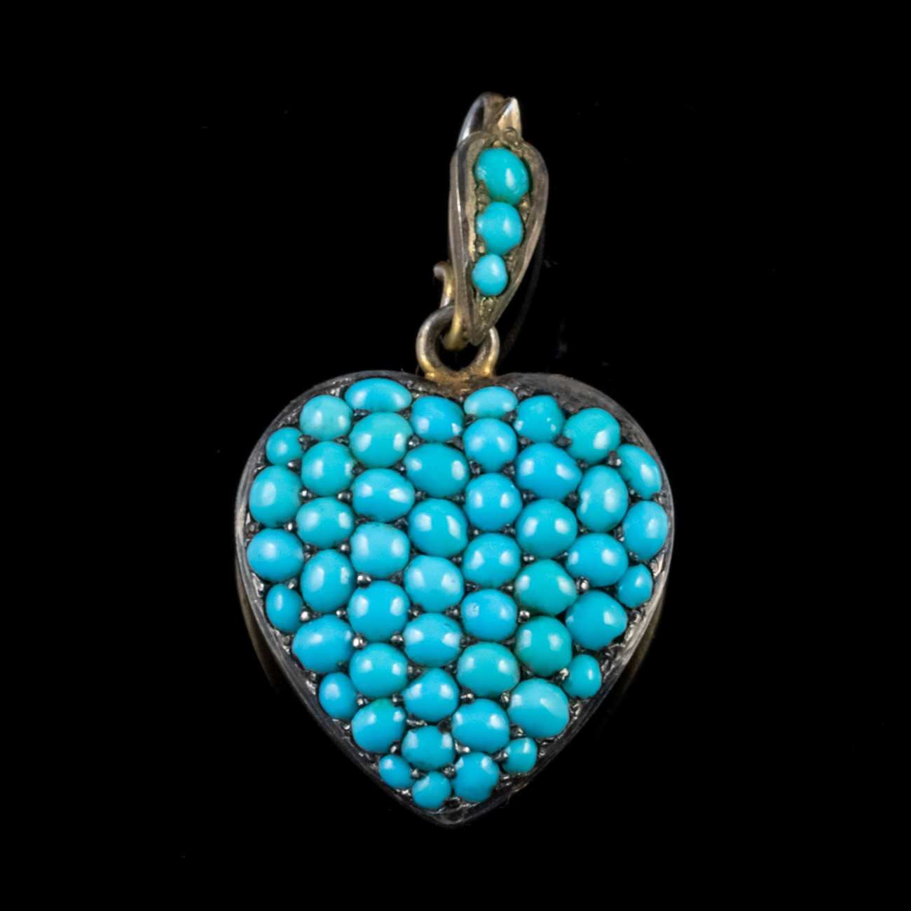 Antique Victorian Turquoise Heart Locket 18ct Gold Silver c.1860