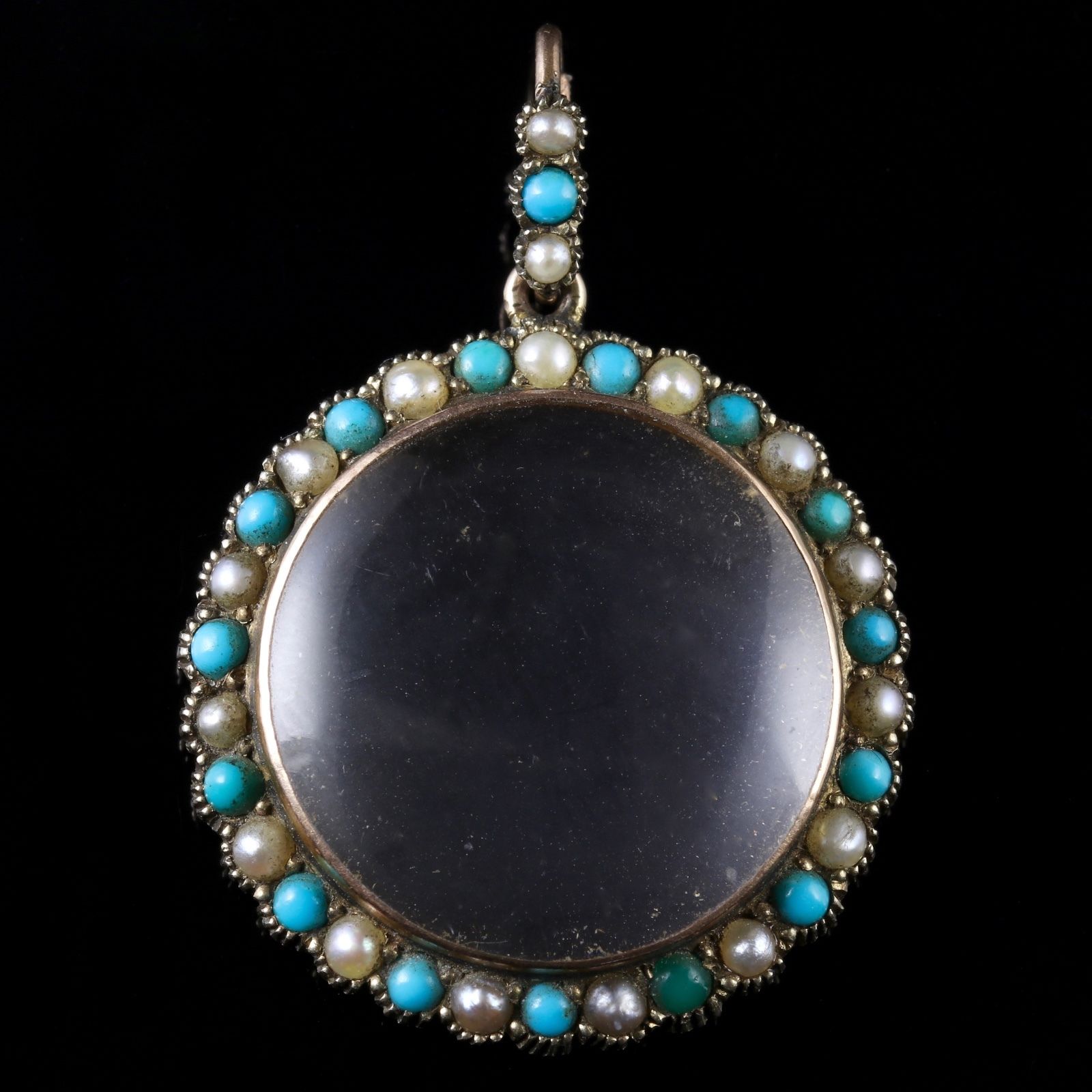 Antique Victorian Turquoise Pearl Pendant Rock Crystal Locket c.1900