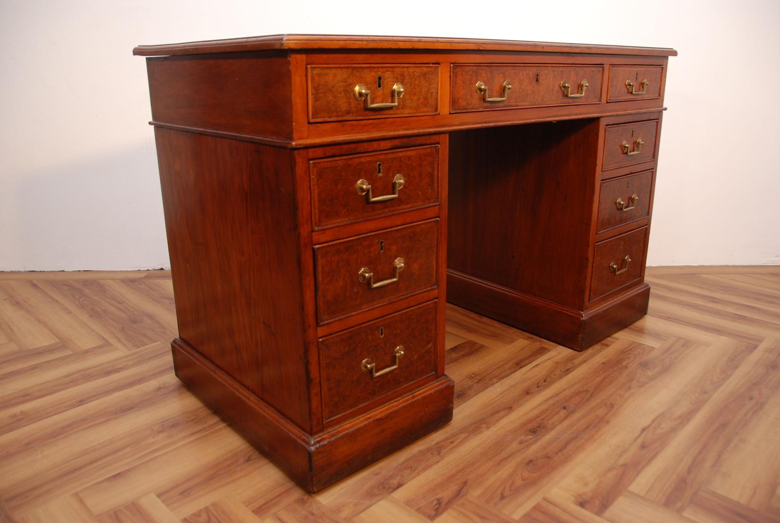 Antique Victorian Twin Pedestal Leather Top Writing Desk