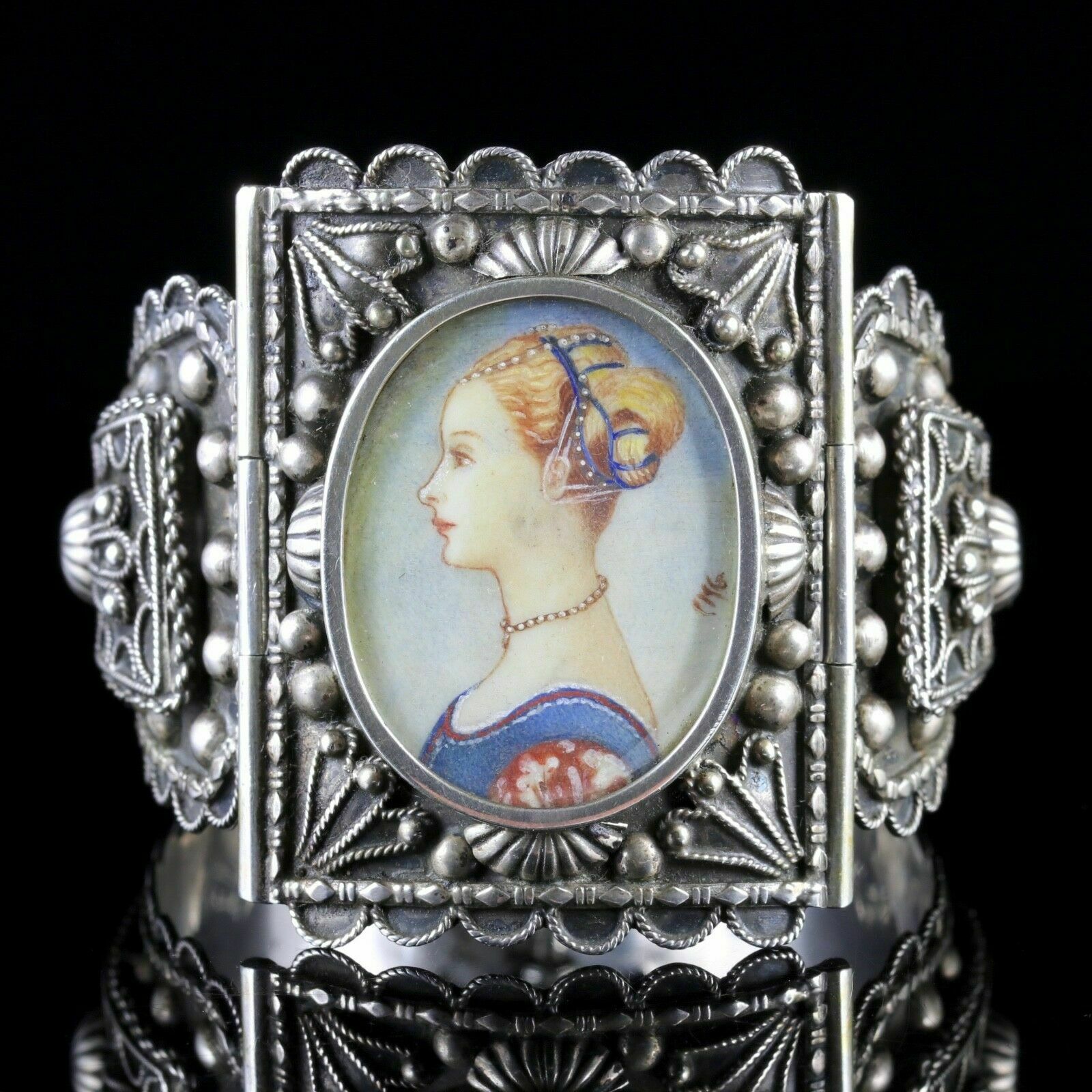 Antique Victorian Venetian Silver Portrait Bracelet c.1860