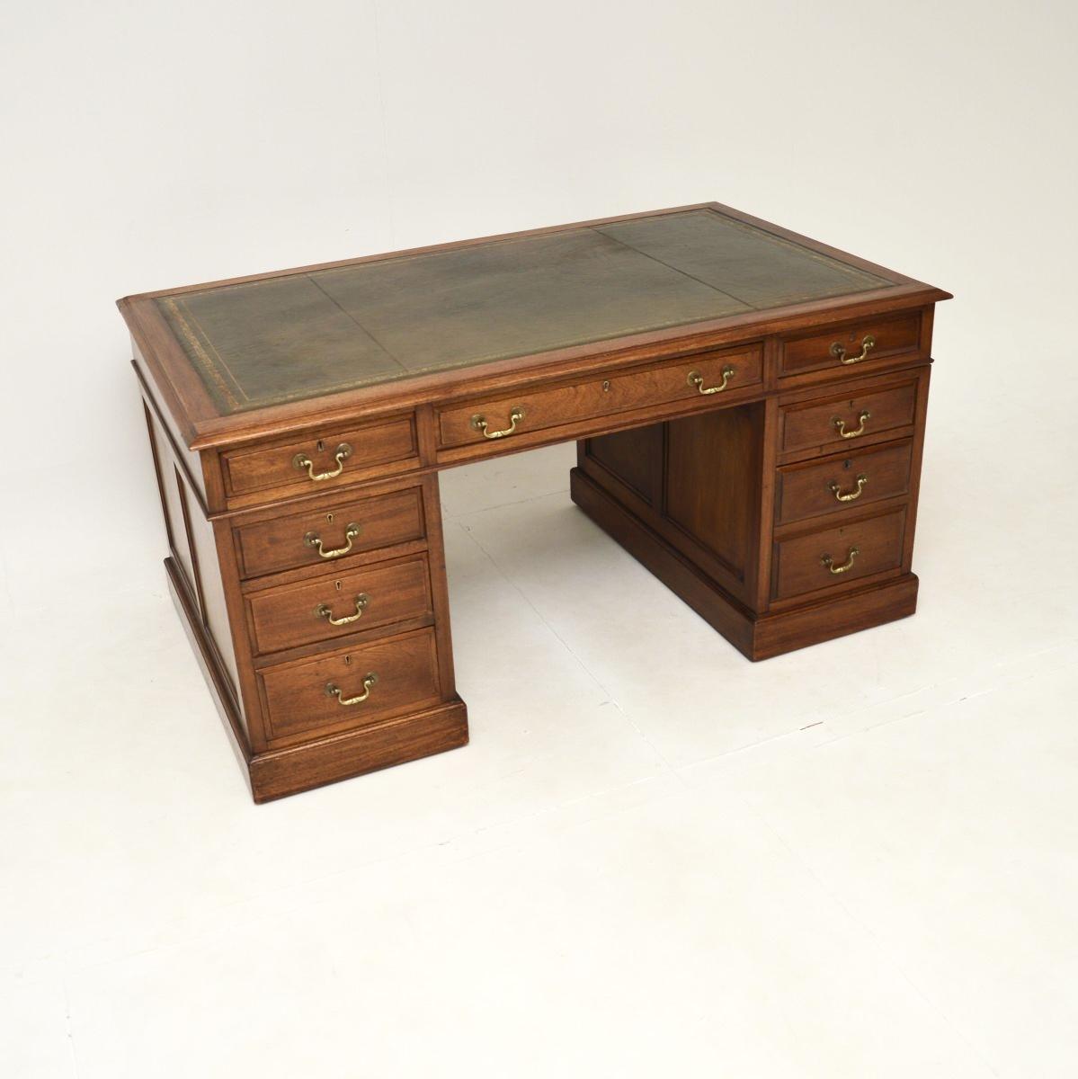 Antique Victorian Walnut Leather Top Pedestal Desk (1 of 10)