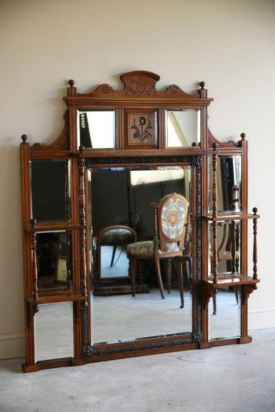 Antique Victorian Walnut Overmantle Mirror (1 of 11)