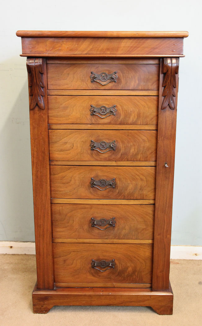 Antique Victorian Walnut Wellington Chest of Drawers