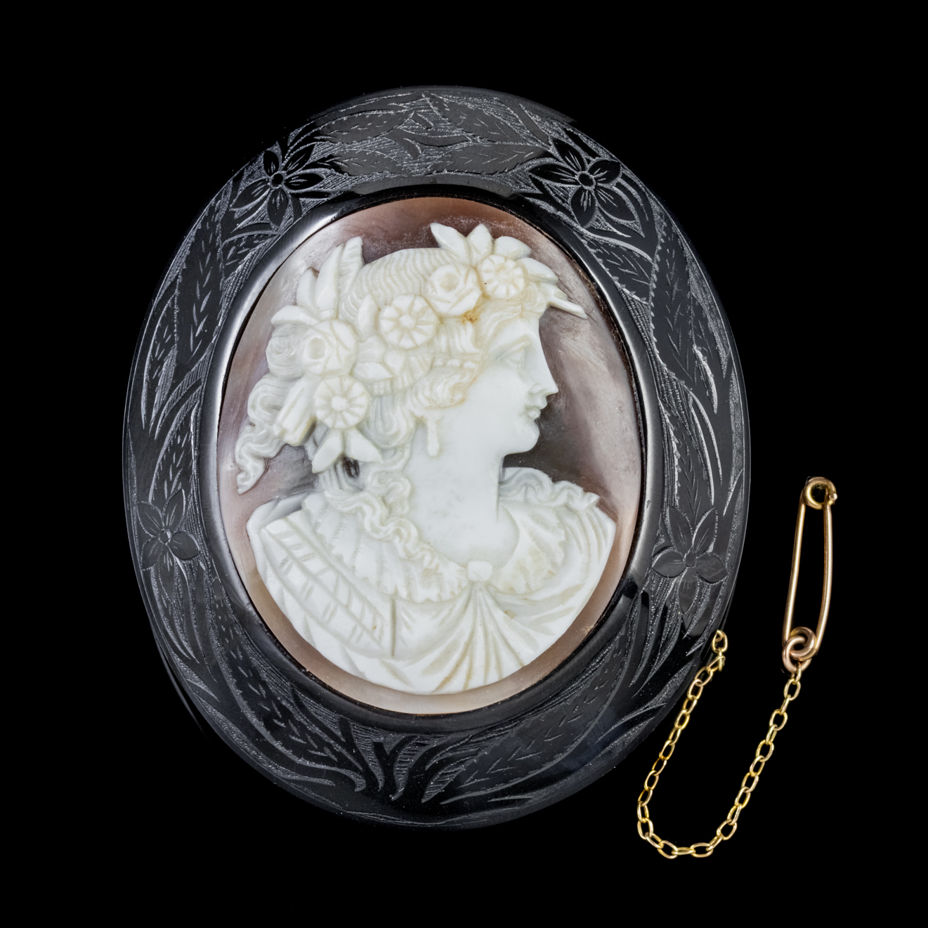 Antique Victorian Whitby Jet Cameo Brooch c.1860