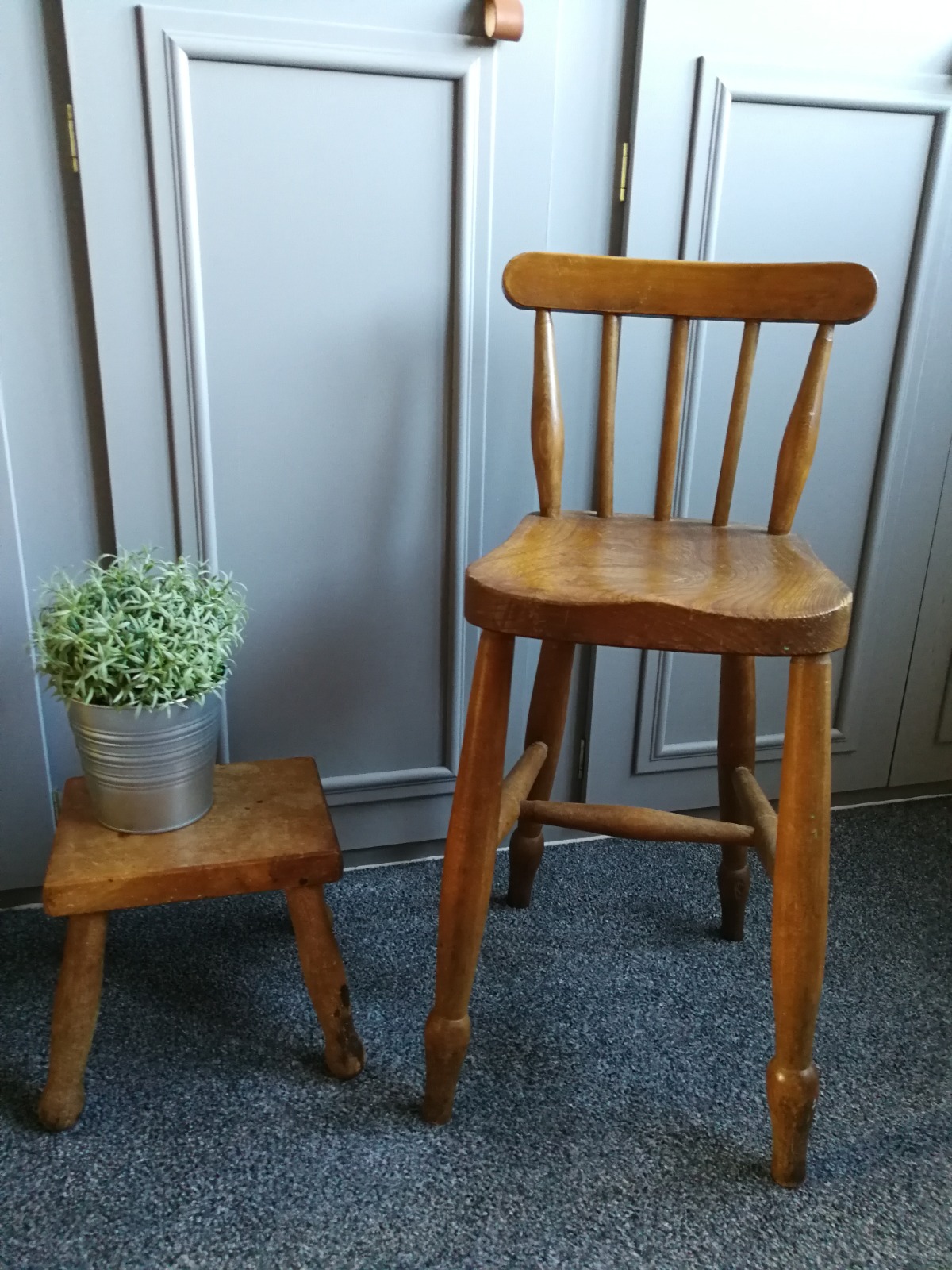 Antique Victorian Windsor Child Dolls High Chair. Rustic Style. Early 1900s