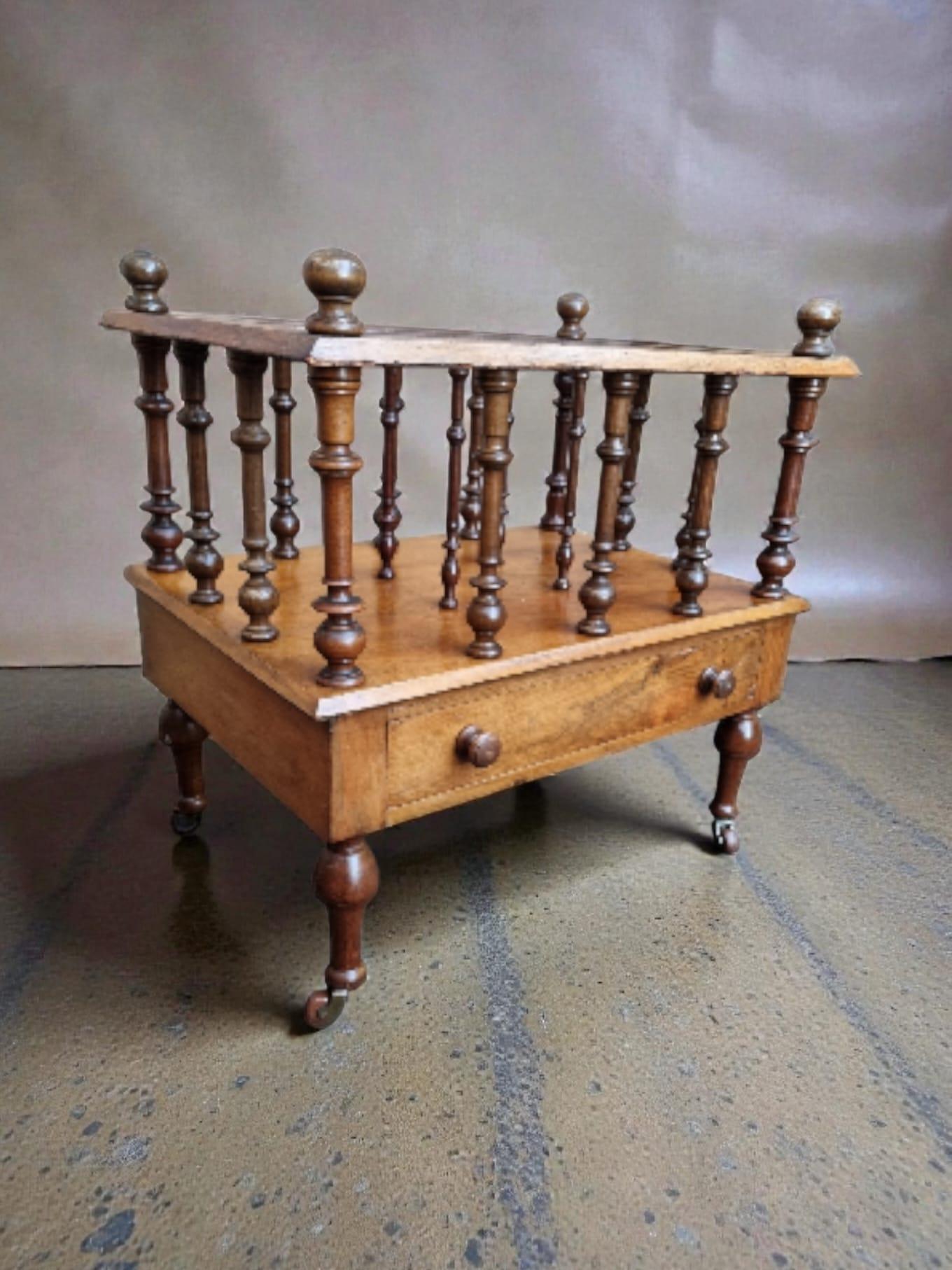 Antique Victorian Wooden Canterbury Magazine Rack / c. 1850 / Turned Spindles