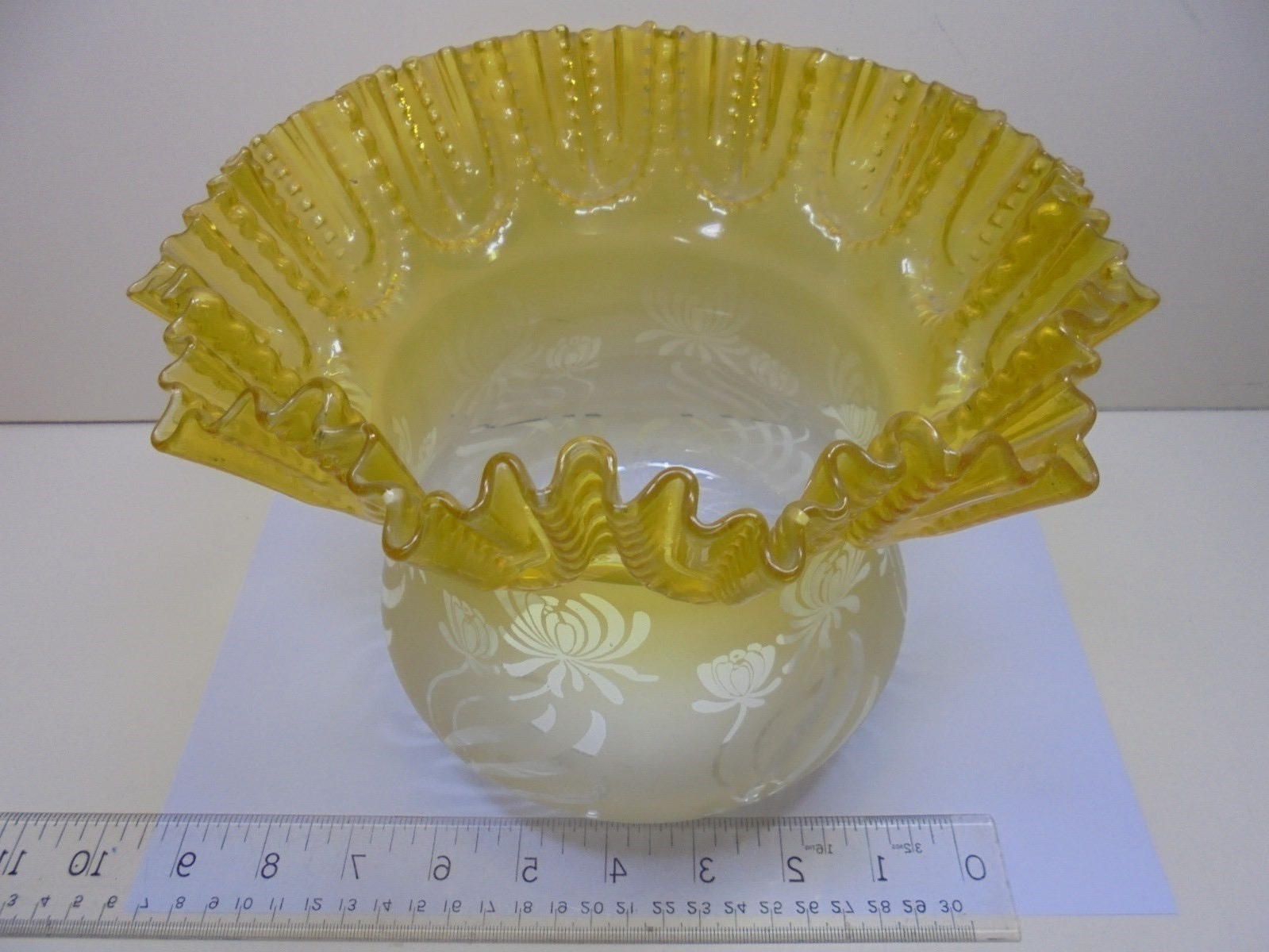 Antique Victorian Yellow Frill Glass Oil Lamp Shade