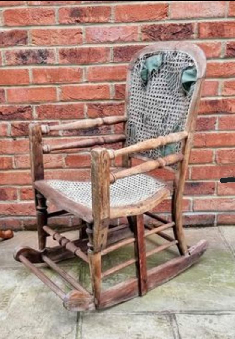 Antique Vintage Adjustable Wooden Wood Children's Baby Toddler High Chair Rocking Chair