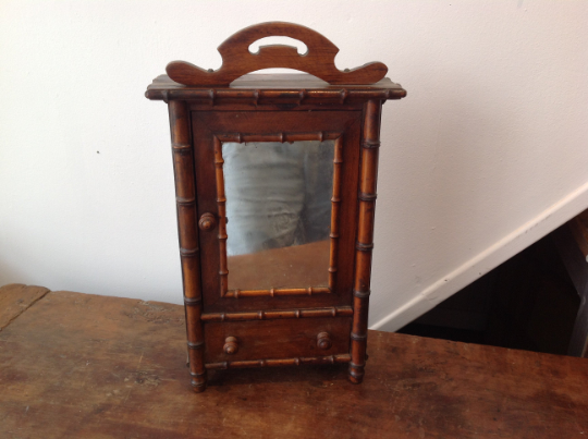 Antique Vintage French Walnut Child's Armoire, Apprentice Piece, with Working Drawer & Mirrored Cupboard Door