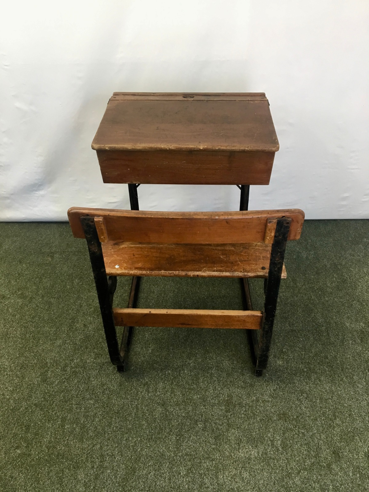 Antique - Vintage School Desk with Integrated Bench Seat - Chair
