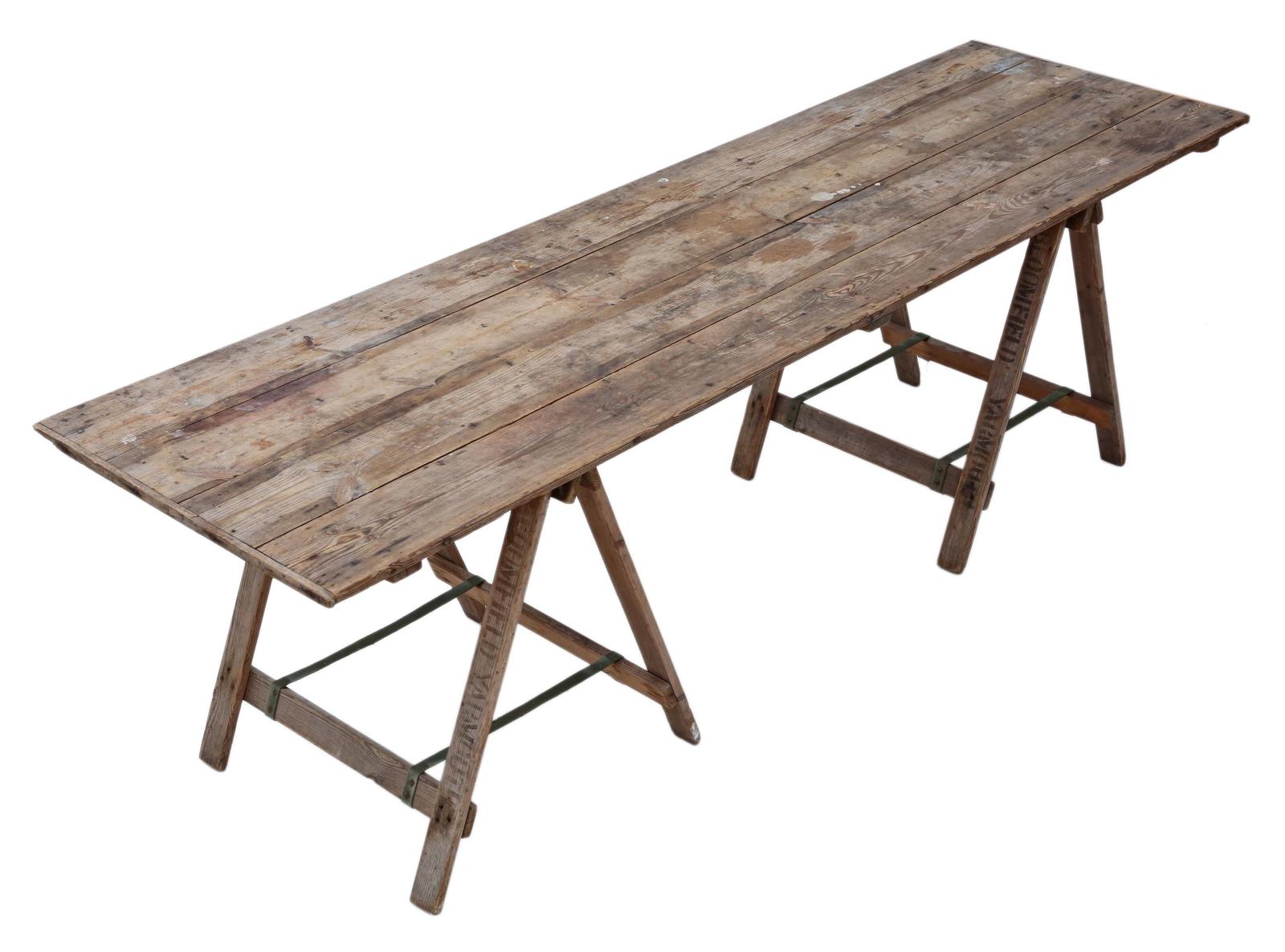 Antique Vintage Trestle Kitchen Refectory Garden Dining Table