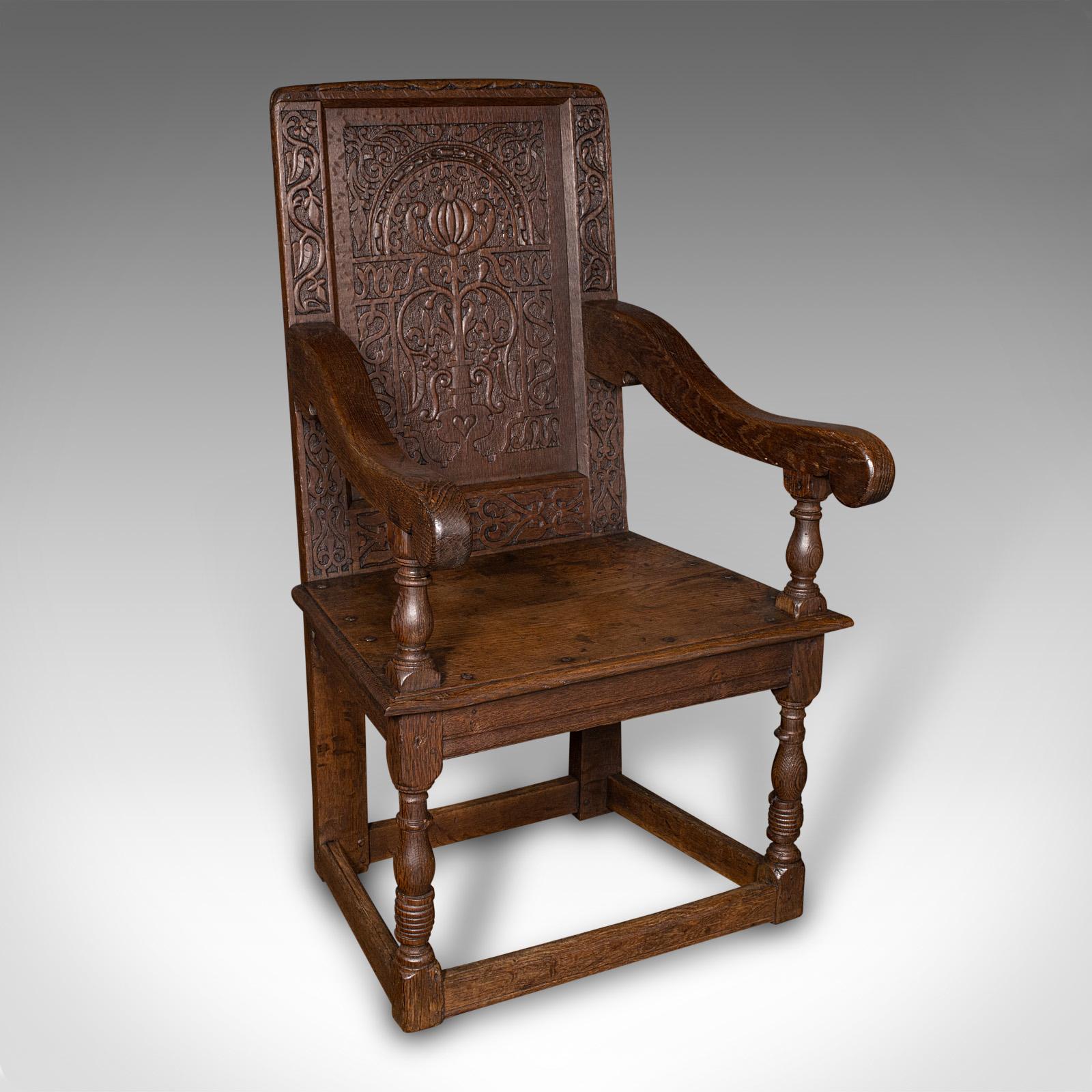 Antique Wainscote Armchair, Scottish, Oak, Carved Throne Chair - Georgian c.1750 (1 of 12)