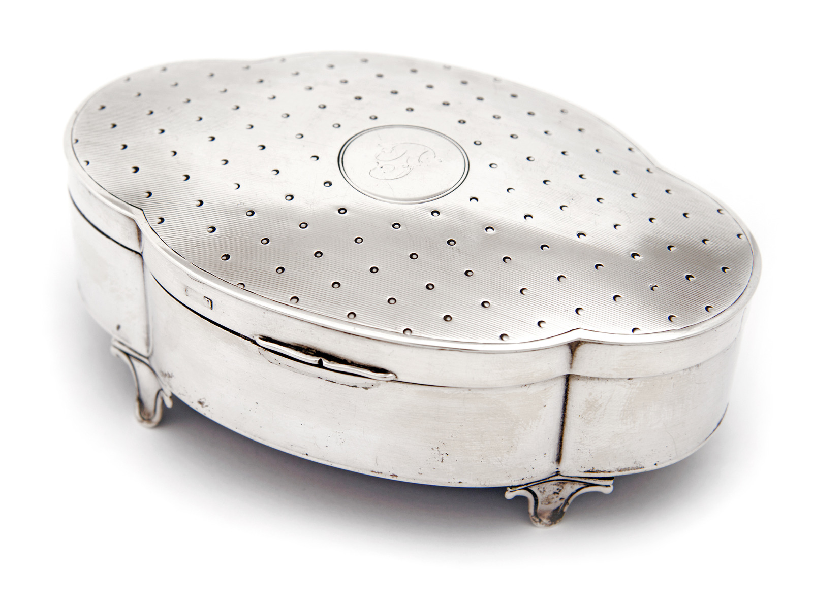 Antique Walker & Hall Oval Shaped Silver Jewellery Box (1 of 1)