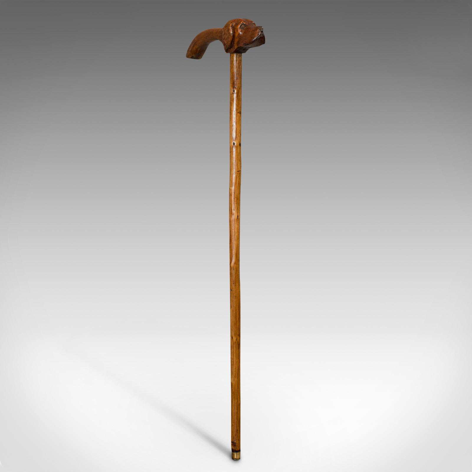 Antique Walking Cane, Fruitwood, Carved Country Shooting Stick, Dog, Victorian