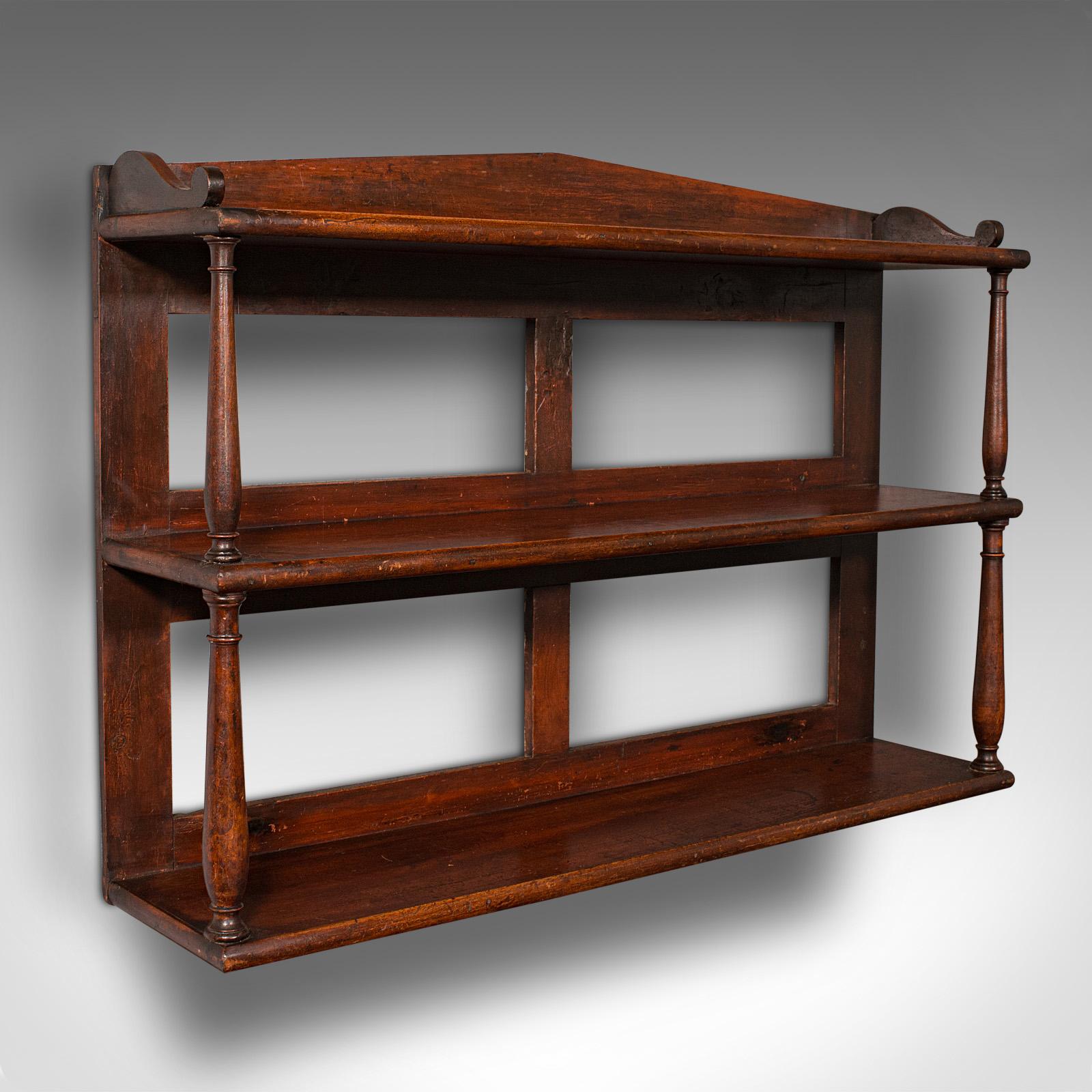 Antique Wall Bookshelf, English, 3-tier Whatnot, Bookcase, Cabinet, Georgian