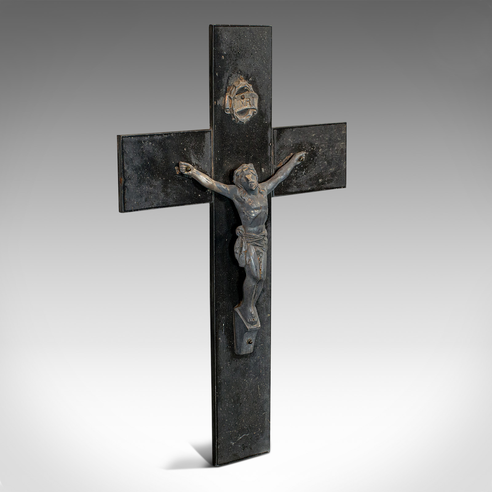 Antique Wall Crucifix, English, Bronze Spelter, Slate, Jesus Christ on Cross