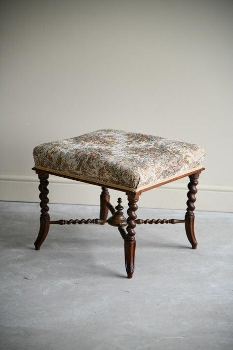 Antique Walnut Barley Twist French Upholstered Stool (1 of 5)
