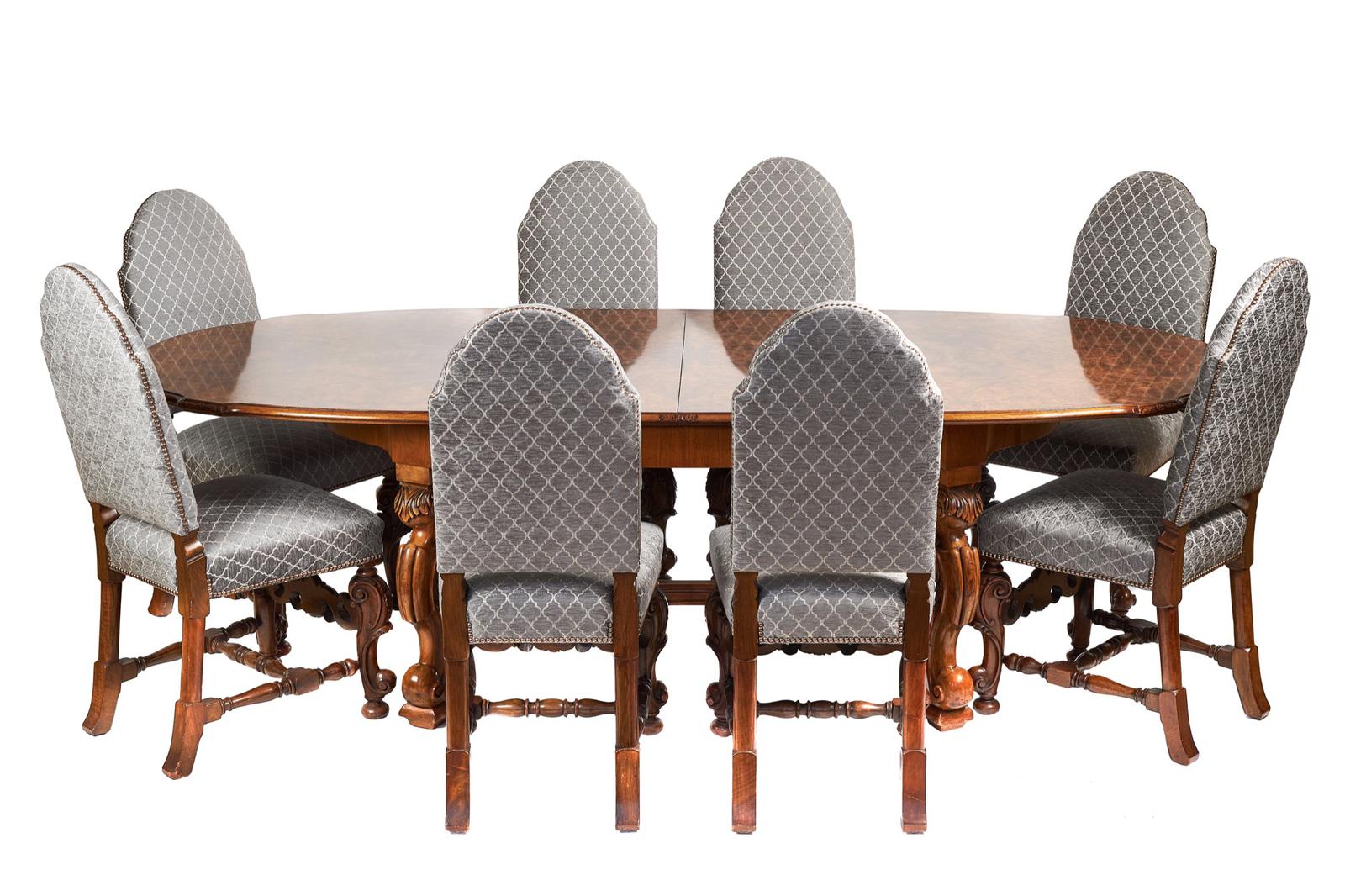 Antique Walnut Carved Dining Table & Set of 8 Carved Dining Chairs