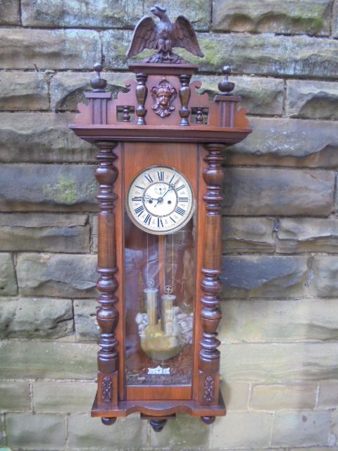 Antique Walnut Cased Double Weight Vienna Wall Clock c.1880 (1 of 1)