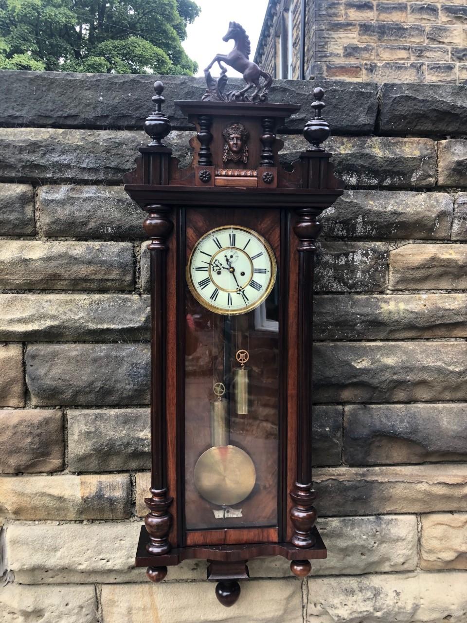 Antique Walnut Double Weight Vienna Wall Clock