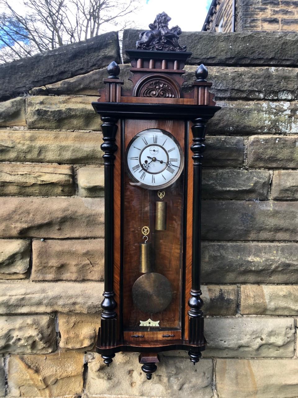 Antique Walnut Double Weight Vienna Wall Clock by Gustav Becker