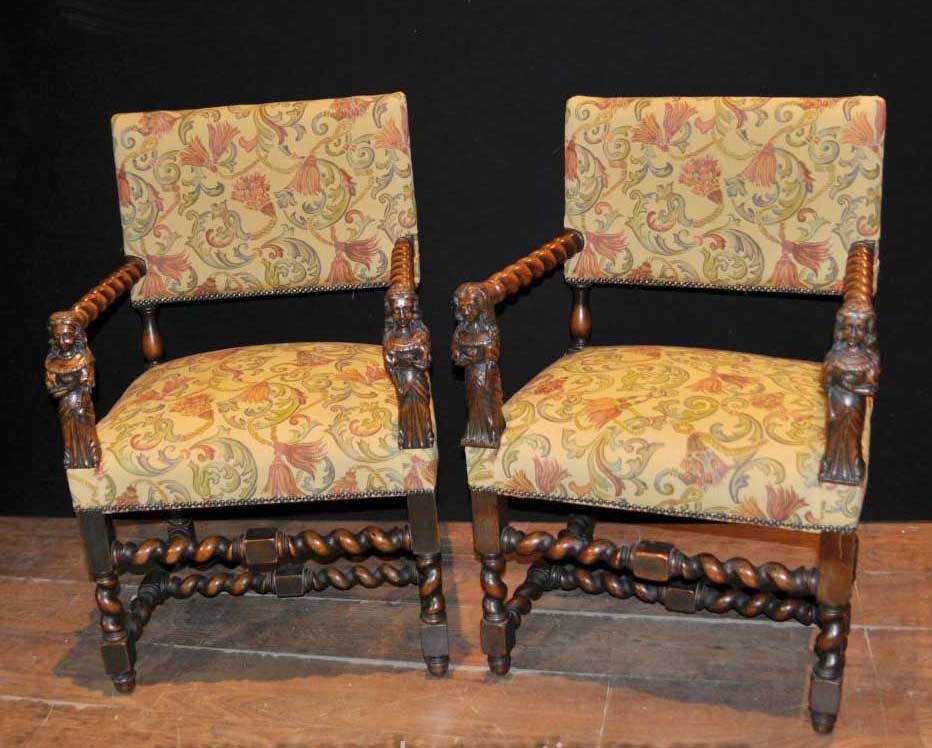 Antique Walnut Hand Carved Italian Armchairs c.1890