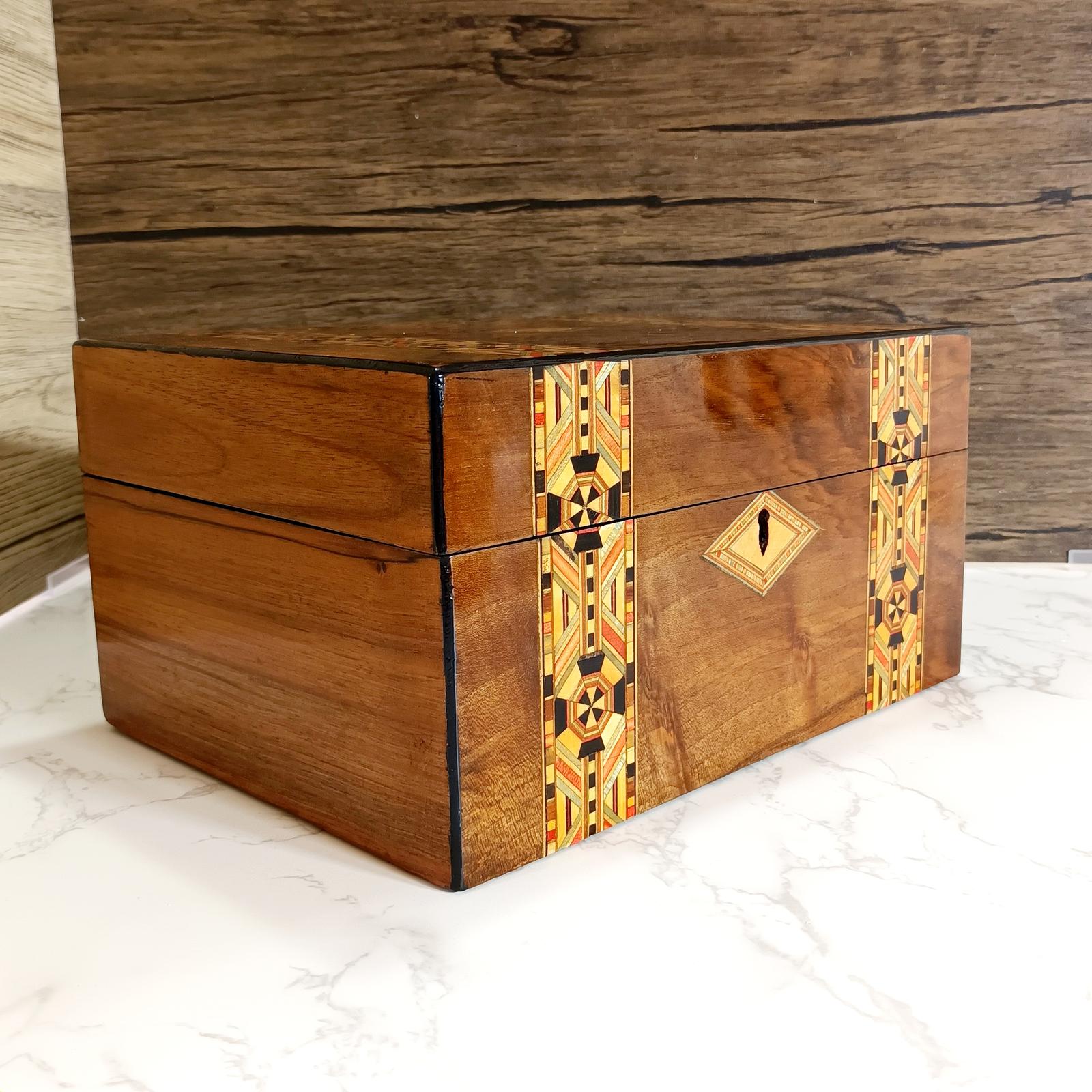 Antique Walnut & Inlaid Jewellery Box