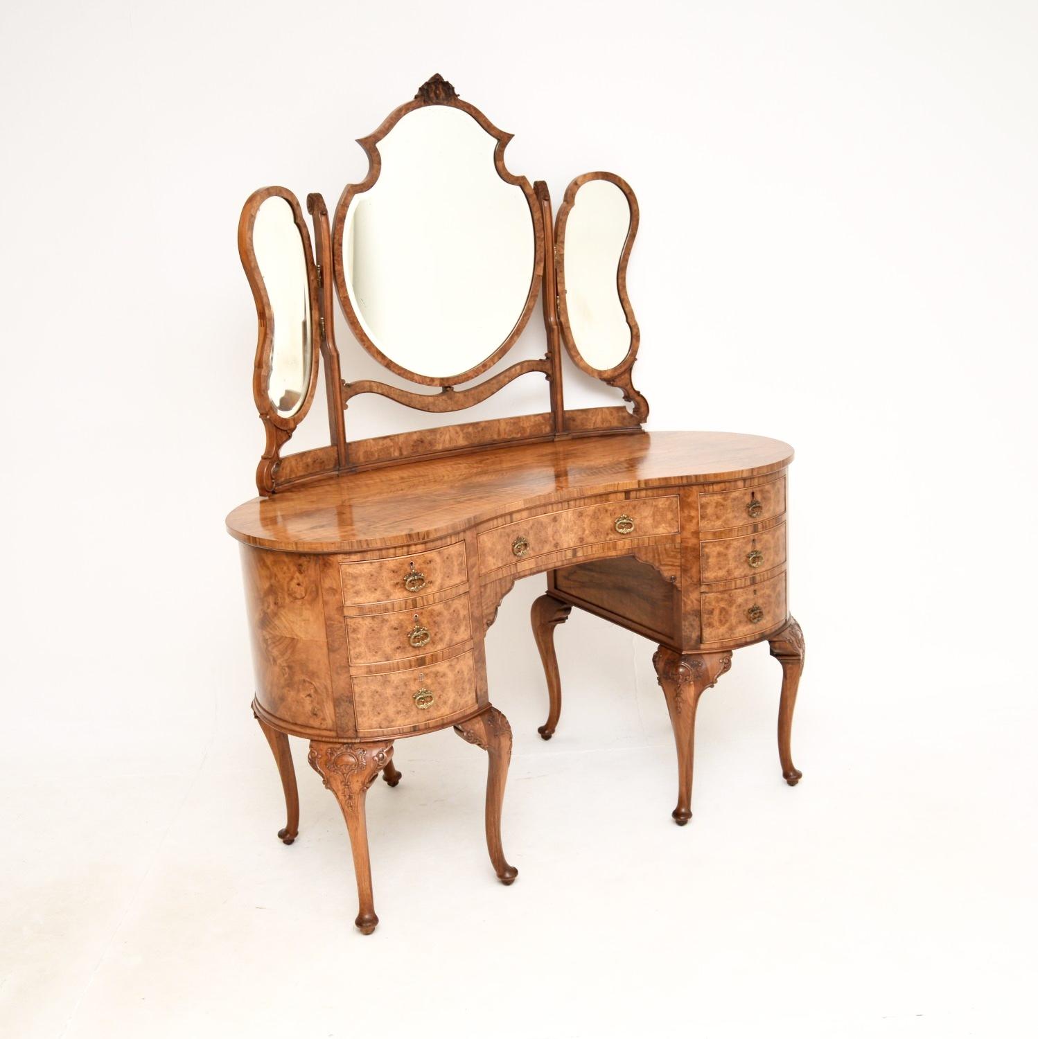 Antique Walnut Kidney Shaped Dressing Table & Stool (1 of 12)