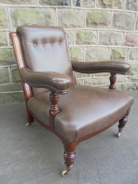 Antique Walnut & Leather Armchair / Library Chair c.1880 (1 of 1)