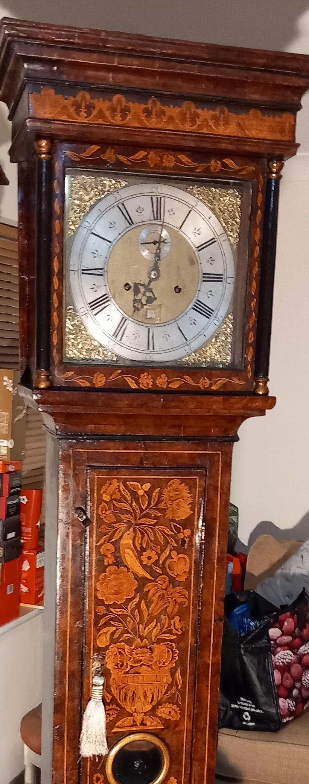 Antique Walnut Marquetry Longcase / Grandfather Clock .