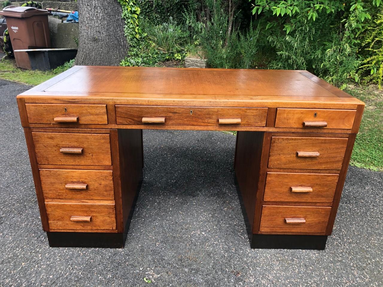 Antique Walnut Pedestal Writing Desk