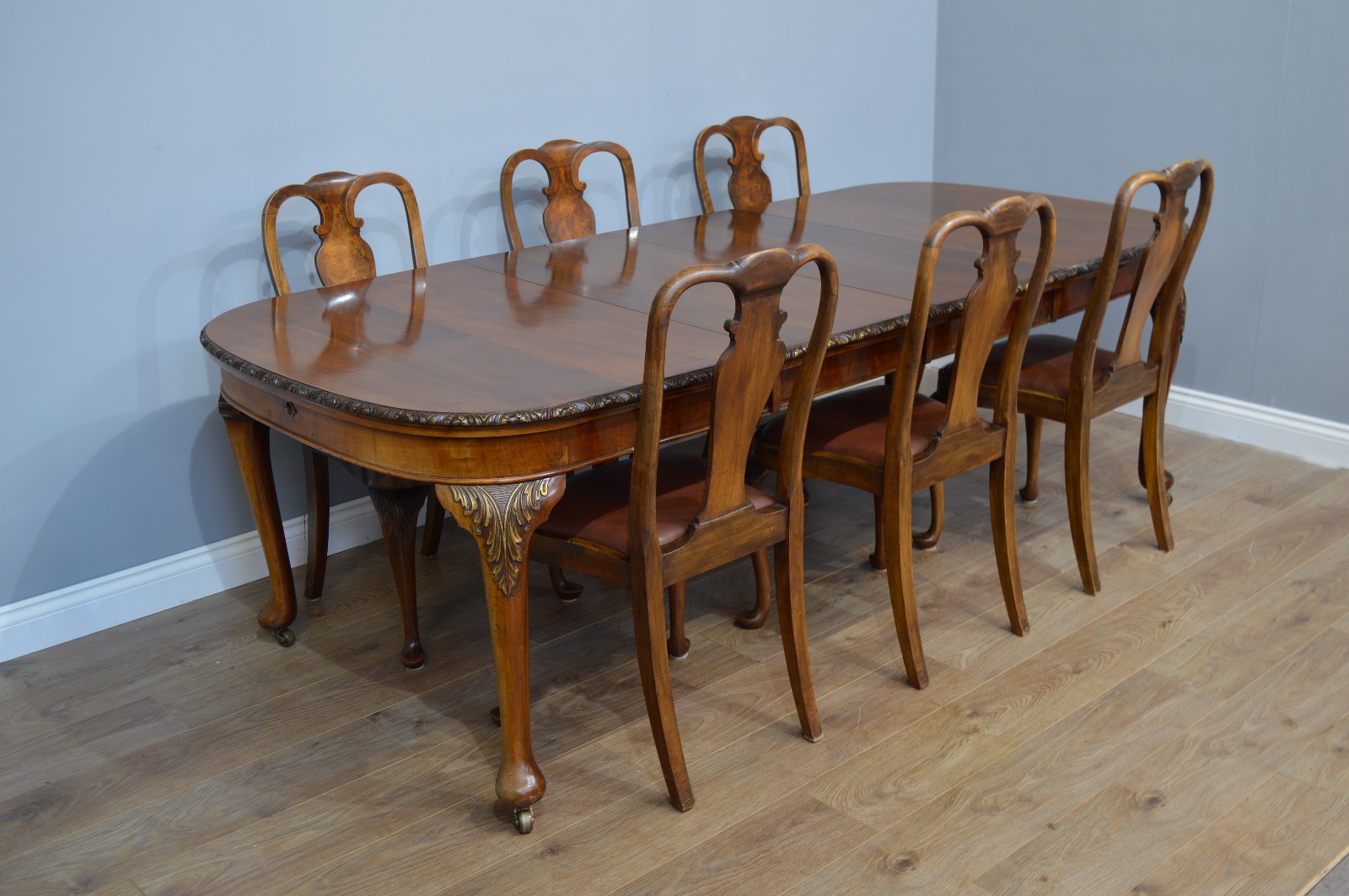 Antique Walnut Two Leaf Wind Out Dining Table & 6 Chairs by Merryweather Holloway London