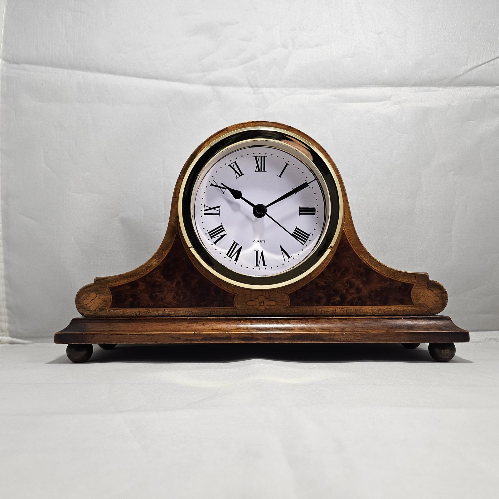 Antique Walnut Vaneered Clock Quartz Movement