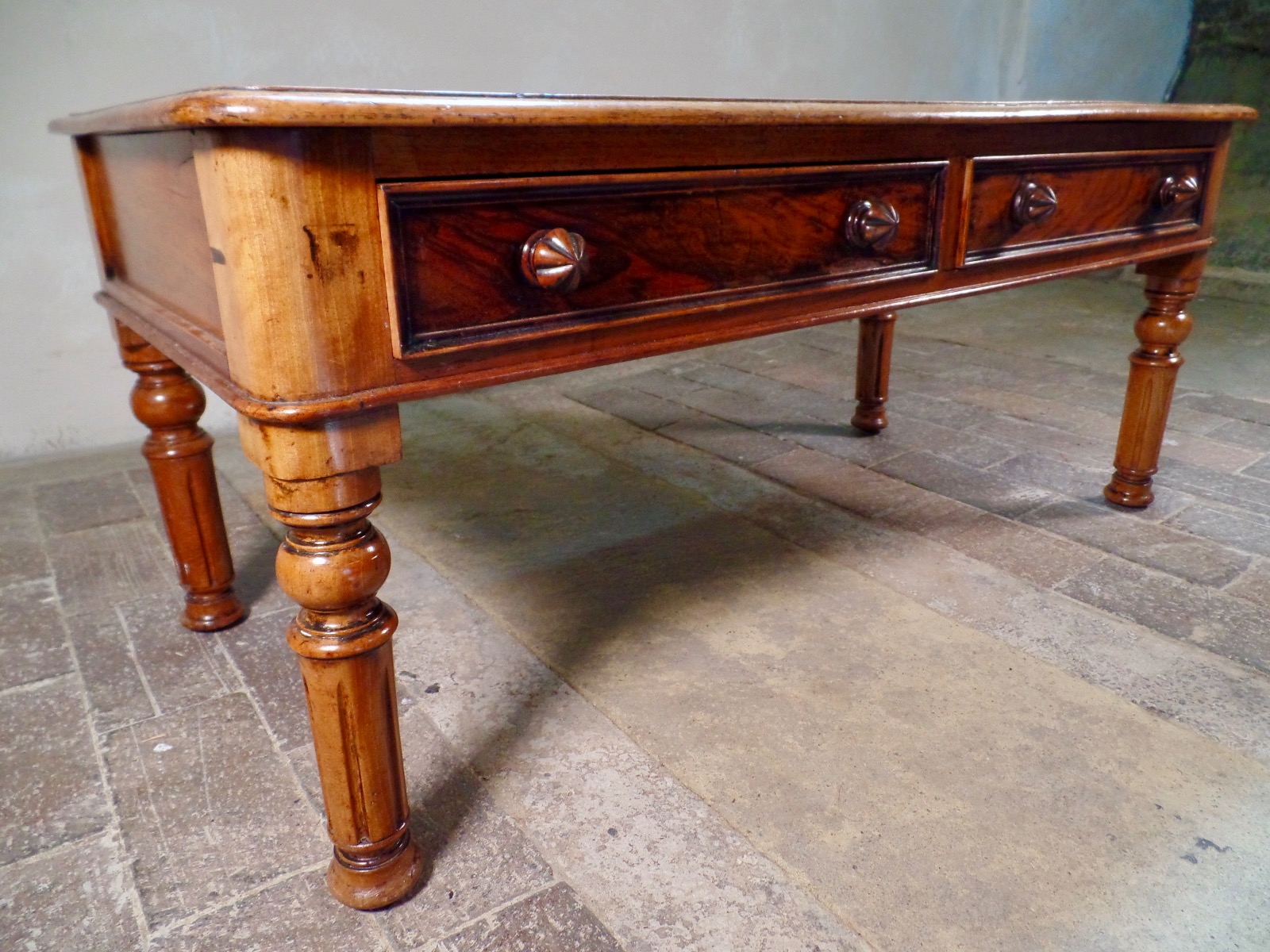 Antique Walnut Veneered Coffee Table Dovetail Drawers Small Living Room Wooden