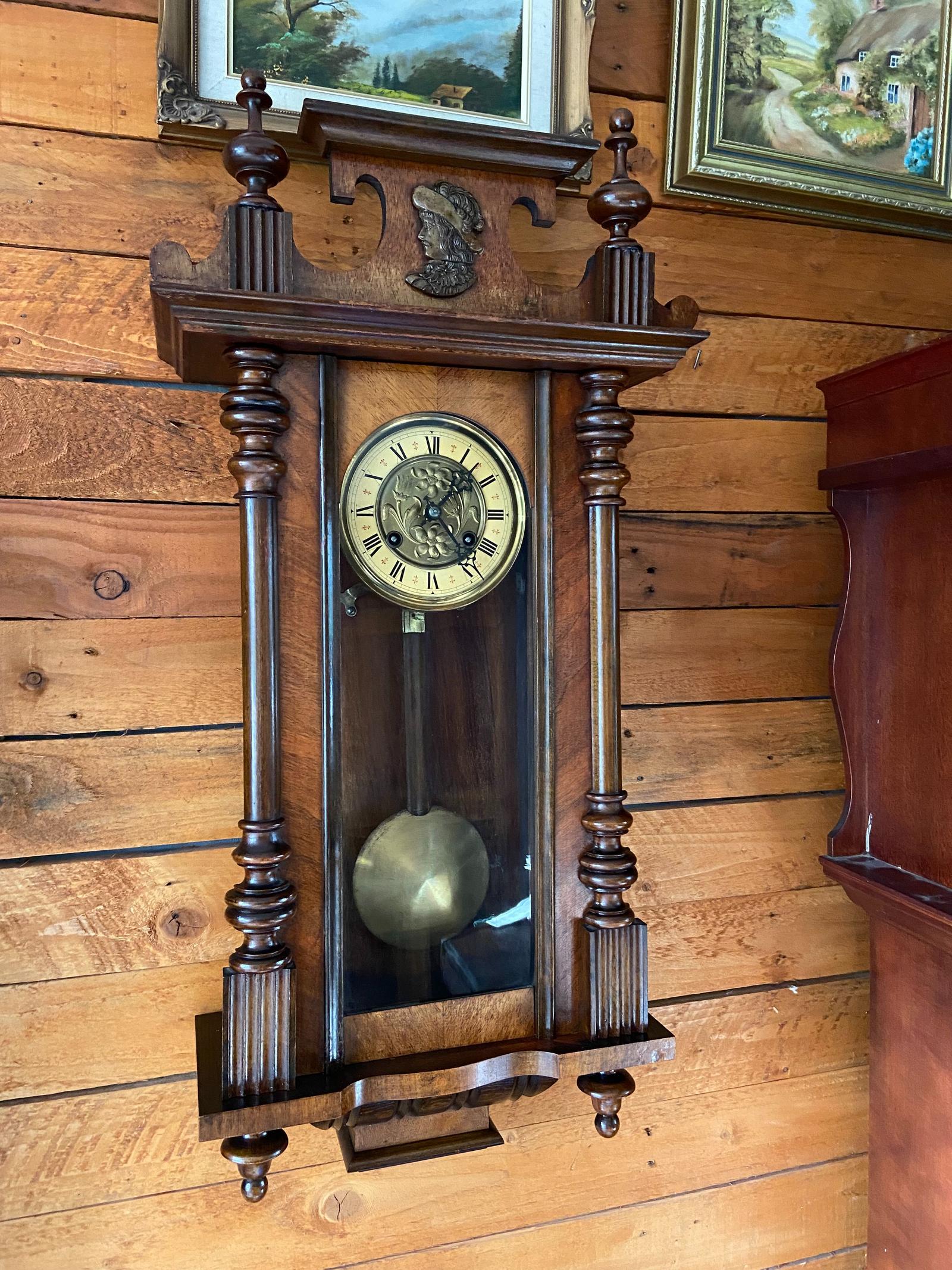 Antique Walnut Vienna Wall Clock / Mechanical Wall Clock c.1920