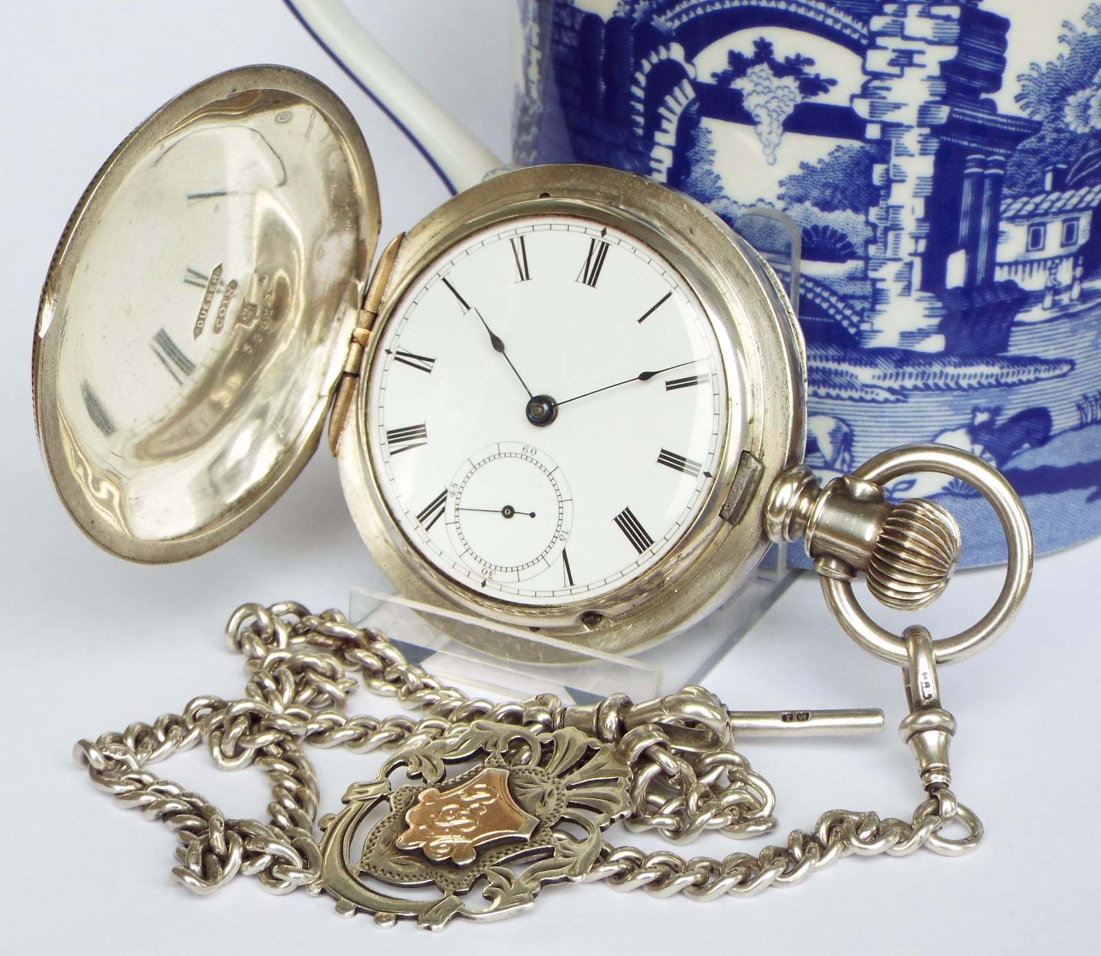 Antique Waltham Silver Full Hunter Pocket Watch with Albert