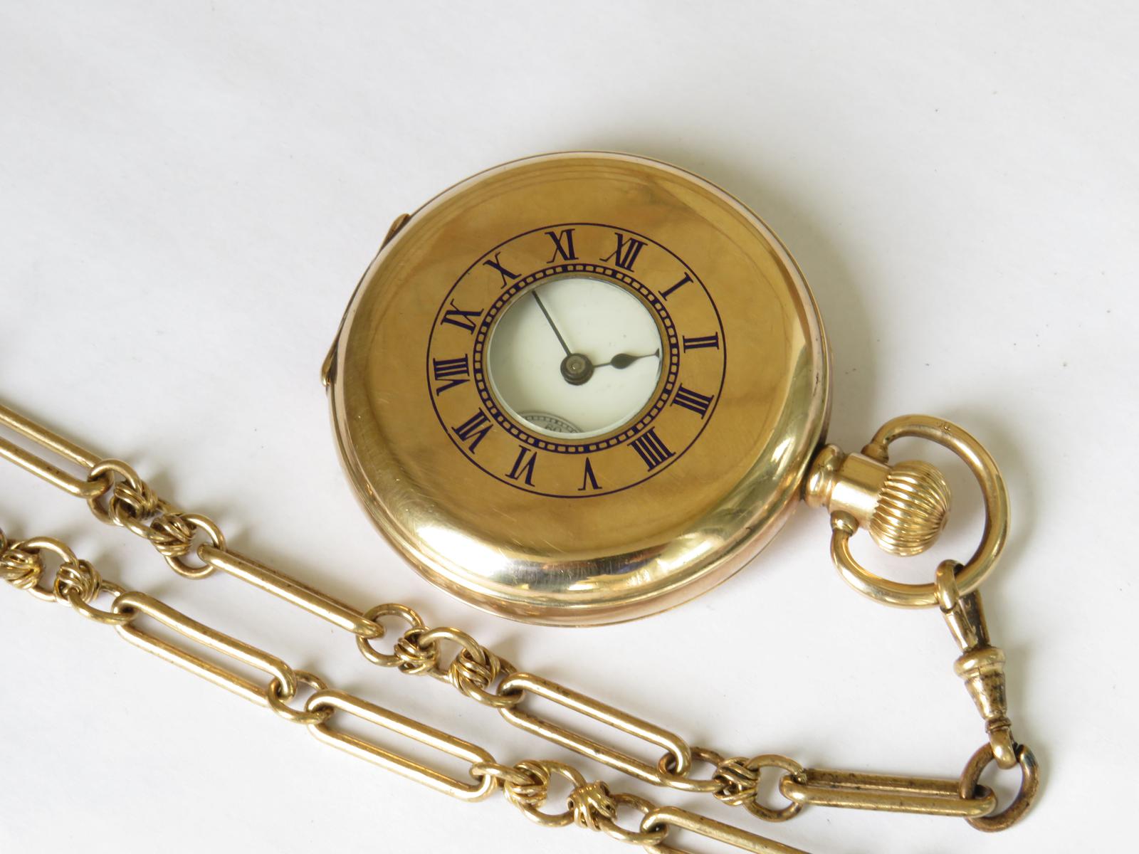 Antique Waltham Traveler Half Hunter Pocket Watch & Chain