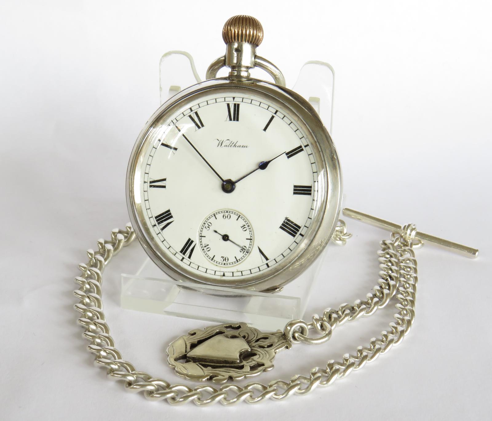 Antique Waltham Traveler Pocket Watch & Chain