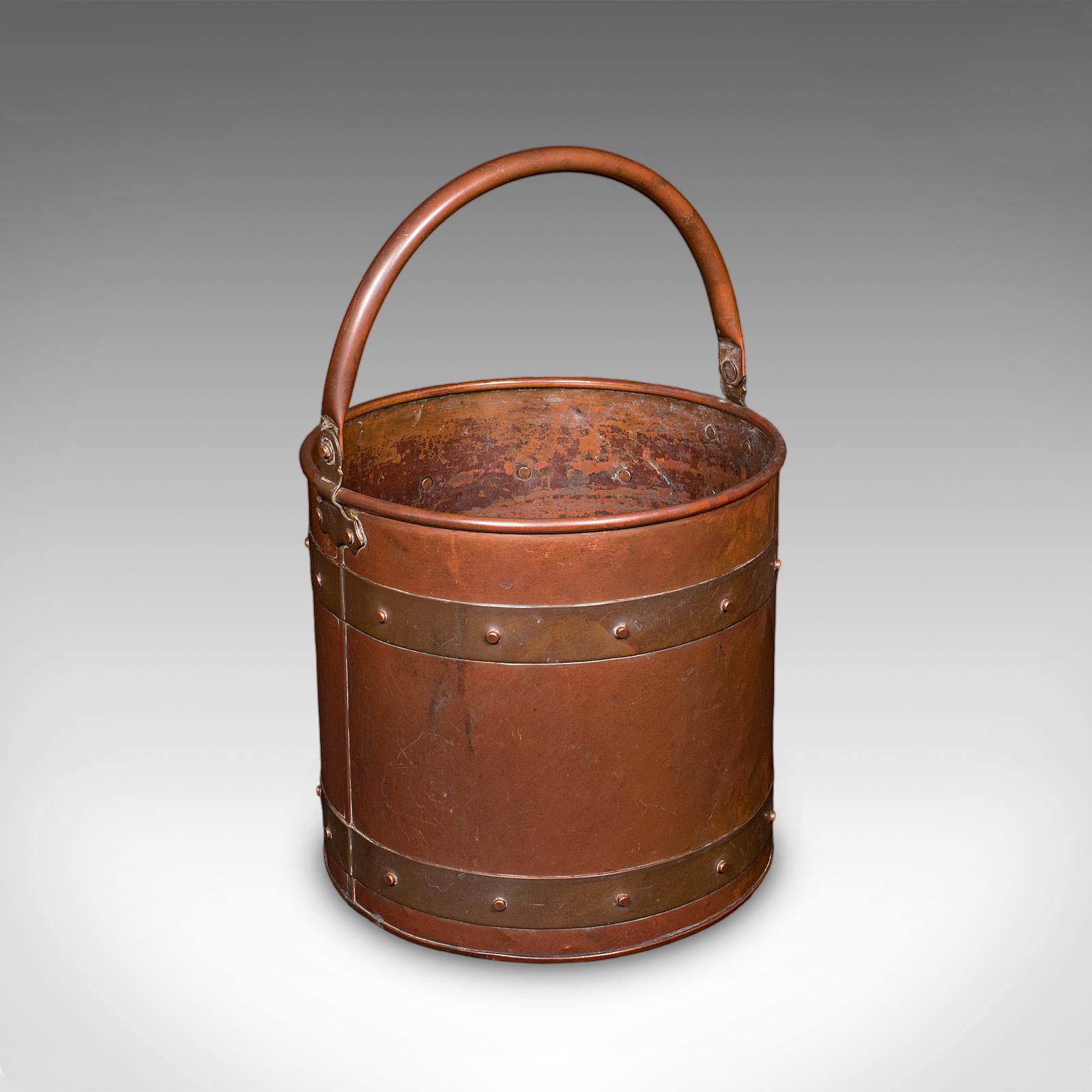 This is an antique waste paper basket. An English, copper study or home office bin, dating to the Edwardian, circa 1910. A superb example of Cornish craftsmanship with a delightful copper finish.