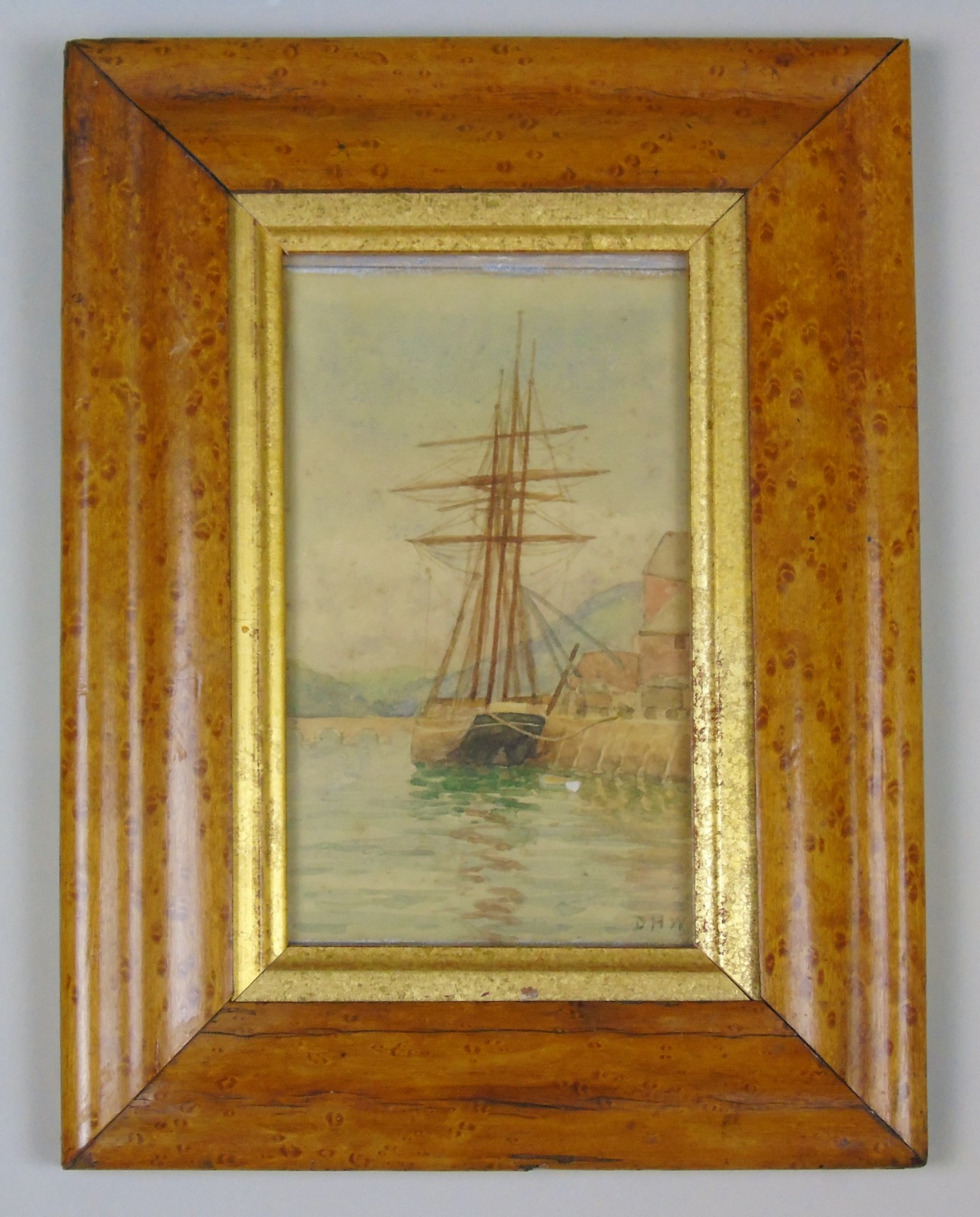Antique Watercolour of Sailing Ship 19th Century Cornwall